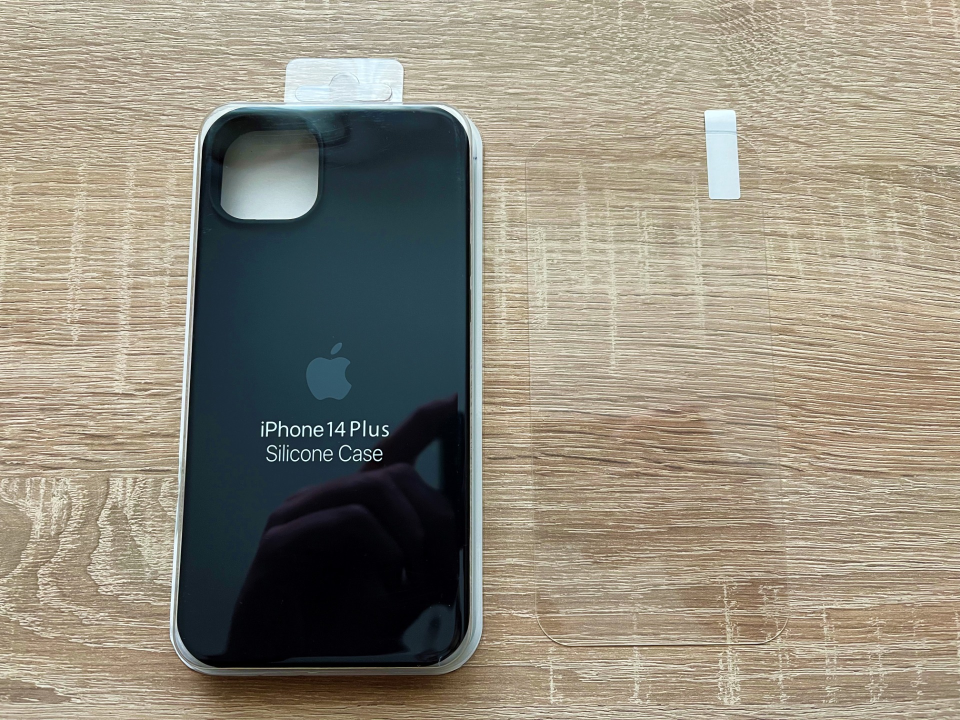 Nové sklo a nový silikónový čierny kryt na Apple iPhone 14 Plus navrhnutý spoločnosťou Apple. Kryt má semišové vnútro, vďaka ktorému nedôjde k žiadnym škrabancom a zachytávaniu špiny z vnútornej strany a na vonkajšej strane má na sebe znak/logo Apple. Kryt má zvýšenú ochranu telefónu vďaka vyvýšeným hranám okolo displeja a fotoaparátu.
